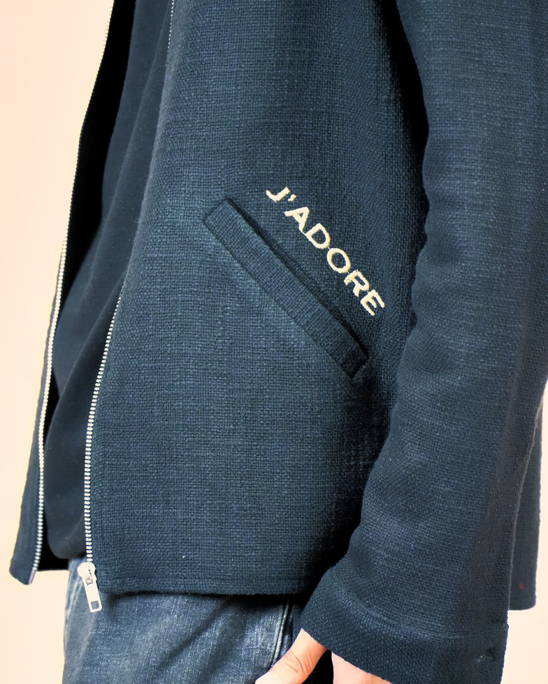 Featuring a bold hand block printed motif on the chest, each piece carries unique handcrafted detailing, making every shacket one-of-a-kind. The sleek, stylish zip closure adds a modern twist, balancing traditional fabric with contemporary design.